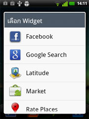 สามารถที่จะเพิ่ม Widgets หรือไอคอนต่างๆ ได้ง่าย เพียงแค่แตะหน้าจอค้างไว้ แล้วเลือกไอคอนต่างๆ มาใส่ที่หน้าจอได้โดยแบ่งออกเป็น
