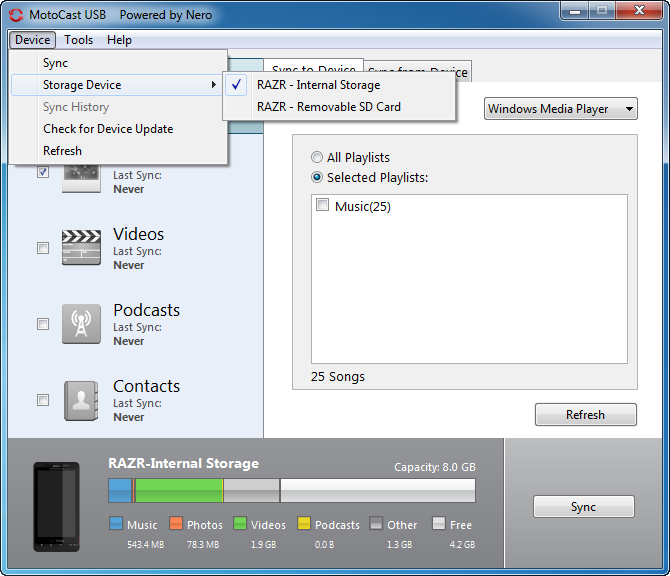 ความบันเทิง ตัวเครื่องมีหน่วยความจำให้จัดเก็บข้อมูลไฟล์มีเดียต่างๆ อยู่ 8GB ซึ่งเป็นพื่นที่ที่เหลือจากการใช้งานของระบบปฏิบัติการ รับฟังเพลงที่จัดเก็บไว้ในเครื่องผ่านแอพพลเคชั่น Music ทั้งนี้ยังสามารถรับฟังรายการต่างๆ จาก Podcasts และ Shoutcast ได้ เมื่อทำการเชื่อมต่ออินเตอร์เน็ต รองรับการใช้งาน DLNA เพื่อเปิดเพลงที่คุณเลือกไปยังอุปกรณ์อื่นๆ ภายในบ้าน เช่น ทีวี, เครื่องเสียง เป็นต้น