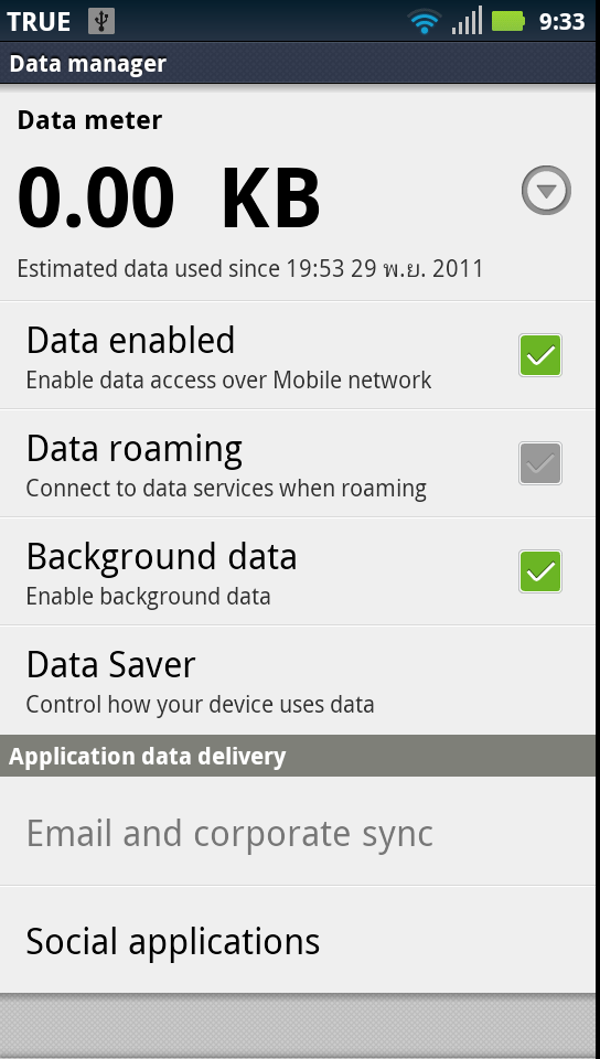 การเชื่อมต่อข้อมูลอินเตอร์เน็ตสามารถใช้งานเครื่องข่าย 3G หรือเลือกเชื่อมต่อผ่าน Wi-Fi เลือกแชร์อินเตอร์เน็ตไปยังอุปกรณ์คอมพิวเตอร์ ผ่านสาย USB หรือ ปล่อยสัญญาณเป็น Wi-Fi Hotspot แบบพกพาโดยสามารถเลือกช่องสัญญาณของ Wireless LAN ทั้งนี้ยังสามารถจำกัดค่าใช้จ่ายการใช้งาน DATA ของอินเตอร์เน็ตเครื่อข่ายได้ด้วย วิธีการกำหนดให้มีการ Sync ข้อมูลเฉพาะ ที่เชื่อมต่ออินเตอร์เน็ตผ่าน Wi-Fi เท่านั้น โดยจะมี Data Manager ให้เลือกเปิดปิดการเชื่อมต่อข้อมูลอินเตอร์เน็ตเครือข่าย