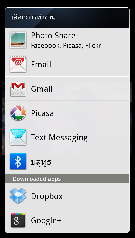การแชร์ไฟล์ การแบ่งปันเรื่องราว สามารถส่งไฟล์ไปยังโทรศัพท์เครื่องอื่นผ่านการส่งอีเมลแล้ว การส่งผ่าน Bluetooth รูปภาพ และ วีดีโอสามารถเลือกแชร์ไปเว็บไซต์ต่างๆ ตามที่ท่านได้เชื่อมบัญชีไว้กับเครื่อง