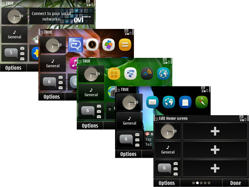 Symbian ANNA มีหน้าจอหลักเริ่มต้นอยู่ที่ 4 ด้าน ผู้ใช้สามารถปรับแต่งการจัดวาง Widget บนหน้าจอเหล่านี้ได้ และสามารถเพิ่มพื้นที่การจัดวางขึ้นมาได้อีก 1 ด้าน การเปลี่ยนไปยังด้านถัดไปของหน้าจอหลักทำได้โดยการปัดนิ้วบนหน้าจอ