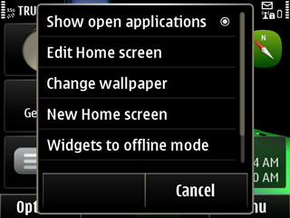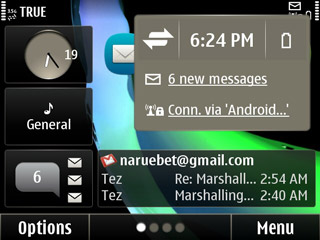 มุมขวาด้านบนของหน้าจอหลักจะเป็นส่วนแสดงการแจ้งสถานะต่างๆ โดยจะแสดงเป็น ไอคอนขนาดเล็ก เมื่อผู้ใช้แตะไปที่บริเวณดังกล่าวจึงจะแสดงรายละเอีียดให้ทราบอีกครั้ง ทังนี้ยังทำหน้าที่เป็นทางลัดเพื่อเข้าไปจัดการการเชื่อมต่อ ตั้งแวลาปลุก และอื่นๆ เลือกเมนู Options มุมล่างซ้ายจะเป็นการปรับแต่งหน้าจอหลัก ซึ่งผู้ใช้สามารถเปลี่ยนภาพพื้นหลังได้จากเมนูนี้