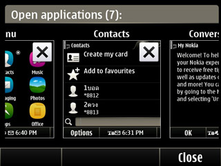 การจัดการแอพพลิเคชั่นที่เปิดทำงานอยู่ได้อย่างง่ายดาย เมื่อกดปุ่ม Home ค้างไว้จะปรากฏหน้าจอเพื่อเลือกที่จะสลับการใช้งาน หรือ เลือกจบการทำงานของแอพพลิเคชั่นที่เปิดไว้