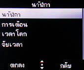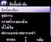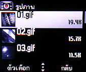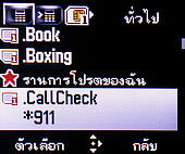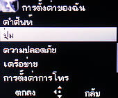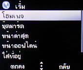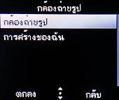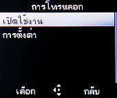 เข้าสู่หน้าเมนูหลัก โดยกดปุ่มซอฟต์คีย์ซ้าย หรือตรงกลางปุ่มควบคุม 5 ทิศทาง เมนูแสดงผลด้วยรูปภาพไอคอน จัดเรียงในรูปแบบตารางสองแถว