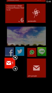ลูกเล่นในการใช้งานหน้าแอพพลิเคชั่น เมื่อแตะบนไอคอนค้างไว้จะมีเมนูขึ้นมาให้เลือก