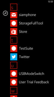 ภาพรวมของหมวดแอพพลิเคชั่น (ที่มีโทนสีหมายถึงมีแอพพลิเคชั่นอยู่ในหมวดอักษรนั้น/สีเทาหมายถึงไม่มีแอพพลิเคชั่นอยู่ในหมวดอักษรนั้น)