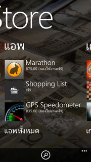Windows Phone Store ช่องทางดาวน์โหลดแอพพลิเคชั่นเพิ่มเติม โดยแบ่งหมวดหมู่ออกเป็น แอพพลิเคชั่น / เกม
