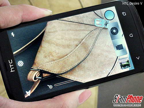 กล้องถ่ายรูป HTC Desire V มาพร้อมกล้องความละเอียด 5 ล้านพิกเซล ออโต้โฟกัส พร้อมไฟแฟลช มีรูรับแสงขนาด F2.8 และเลนส์ 34 มิลลิเมตร พร้อมลูกเล่นเอฟเฟ็กต์มากมาย