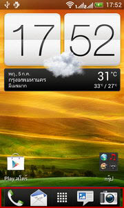 หน้าจอหลัก เป็นหน้าที่เรียกใช้งานไอคอนทางลัดที่ปรับแต่งเองได้ เลื่อนไปดูหน้าจอหลักอื่นโดยการใช้นิ้วปัดบนหน้าจอไปทางซ้าย/ขวา