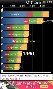 การทดสอบความเร็ว และการแสดงผลของตัวเครื่อง ผลทดสอบความเร็ว Benchmark ด้วย Quadrant Standard ได้ 1,966 คะแนน