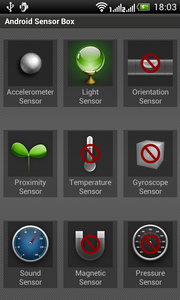 ทดสอบเซนเซอร์ด้วยโปรแกรม Android Sensor Box พบเซนเซอร์ดังนี้ • Accelerometer Sensor ตรวจวัดการหมุน (วัดความเร็วเชิงมุม)