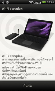 Wi-Fi Hotspot สามารถแชร์การเชื่อมต่ออินเทอร์เน็ตของเครื่องโทรศัพท์ไปให้อุปกรณ์อื่นที่รองรับการใช้งาน Wi-Fi ได้ (พีซี, สมาร์ทโฟน, แท็บเล็ต)