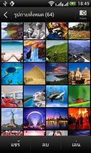 Gallery รับชมอัลบั้มภาพในเครื่องและ microSD การ์ดผ่านแอพ Gallery ภายในจะแบ่งหมวดหมู่ตามที่ผู้ใช้กำหนดไว้ สามารถแสดงผลได้ทั้งแนวตั้งและแนวนอน, สามารถเรียกดูรูปทั้งอัลบั้ม, เฉพาะใน Facebook, Flickr, Dropbox, อัลบั้มเว็บ Picasa, Skydrive