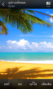 ภายในอัลบั้มรูปจะมีรูปภาพถูกจัดเก็บไว้อยู่ ในหน้าการชมภาพ มีเมนู แชร์, ลบ, แก้ไข (ครอบตัด, ใส่เอฟเฟ็กต์ (ไม่มี, เพิ่มคุณภาพอัตโนมัติ, ซินเนมอล, คอนทราสต์สูง, โทนสีน้ำตาล, โอเวอร์เอ็กซ์โพสต์, แสงแวววับ, พลบค่ำ, สดใส, อบอุ่น, เย็น, เยือกเย็น, วินเทจ, เก่าแก่), หมุนซ้าย, หมุนขวา), เพิ่มเติม