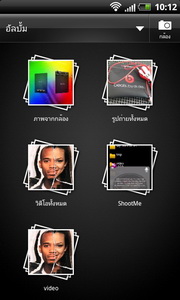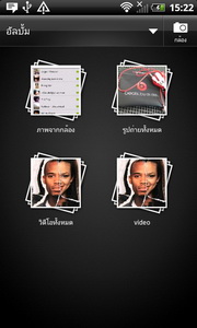 อัลบั้มภาพ และวิดีโอ แกลลอรี่รวมไฟล์รูปภาพ และวิดีโอไว้ในที่เดียว สามารถเลือกไฟล์ดูภาพ และวิดีโอจากที่จัดเก็บอยู่ในโทรศัพท์ เซิร์ฟเวอร์มีเดีย และอัลบั้มออนไลน์ที่ผูกบัญชีไว้ เช่น Facebook, Flickr เป็นต้น