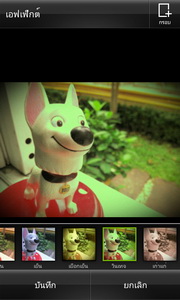 นอกจากนี้ยังมีฟังก์ชั่นแก้ไขรูปภาพเพิ่มเติมมาให้ ครอบตัดเฉพาะส่วนที่เลือก, หมุนภาพซ้าย/ขวา ใส่เอฟเฟ็กต์ ปรับอัตโนมัติ, ซินเนมอล, คมชัดสูง, โทนสีน้ำตาล, โอเวอร์เอ็กซ์โพสต์, แสงแวววับ, พลบค่ำ, สดใส, อบอุ่น, เย็น, เยือกเย็น, วินเทจ, เก่าแก่ และกรอบรูปหลายแบบ พร้อมแสดงตัวอย่างภาพก่อนบันทึก