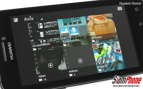 ภาพ และวิดีโอ ภาพ และวิดีโอทั้งหมดจะเก็บอยู่ในเมนูคลังภาพ โดยจะแบ่งรายละเอีดยของไฟล์ตามโฟลเดอร์ที่เราโอนรูปเข้าโทรศัพท์