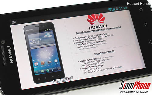 ขอขอบคุณ : Huawei Technologies (Thailand) Co., Ltd. 0-2654-3622 ข้อมูลผู้ใช้ ร่วมแสดงความเห็นกับ Huawei Honor แคตตาล็อกตัวเครื่อง : http://www.siamphone.com/spec/huawei/honor_u8860.htm