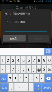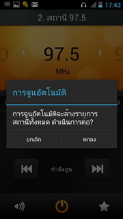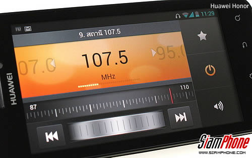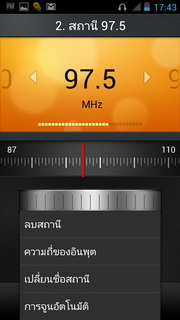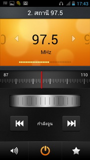 สำหรับวิทยุฟังได้โดยใช้สายสัญญาณขนาด 3.5 มิลลิเมตรเป็นตัวรับสัญญาณ เมื่อเข้ามาแล้วจะแสดงสถานีที่เล่น, แถบเปลี่ยนคลื่นที่สามารถใช้นิ้วเลื่อนไปตำแหน่งที่ต้องการ, ค้นหาสถานีอัตโนมัติ, เล่นเพลงผ่านลำโพง, หูฟัง, เปิด/ปิดวิทยุ, บันทึกเป็นช่องโปรด ลบสถานี, เลือกคลื่นโดยใส่คลื่นความถี่, เปลี่ยนชื่อสถานี และจูนคลื่นวิทยุอัตโนมัติ
