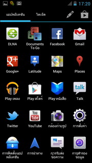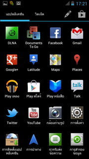 เมื่อเข้าหน้าเมนูจะเปลี่ยนออกเป็น 2 ส่วน คือส่วนของ แอพพลิเคชั่น และวิดเจ็ต สามารถกดแตะที่แอพพลิเคชั่นค้างไว้เพื่อนำออกไปแสดงผลที่หน้าแรกได้