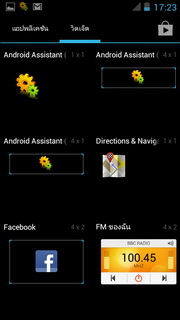 การเพิ่มวิดเจ็ตในหน้าแสดงผลหลัก ทำได้โดยเข้าไปในเมนูจากนั้นเลือกแถบวิดเจ็ตด้านบน ก็สามารถเลื่อนดูเลือกวิดเจ็ตที่ต้องการเพิ่มในหน้าแรกได้