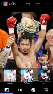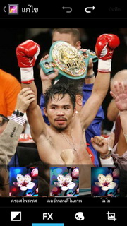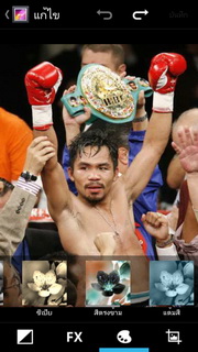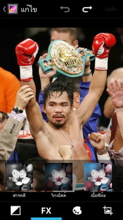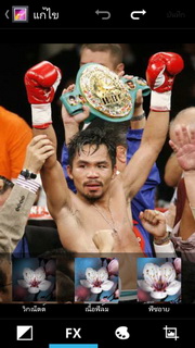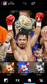 สำหรับรูปภาพสามารถแสดงผลได้ทั้งแนวตั้ง หรือแนวนอน และยังนำรูปภาพเล่นออกทางสื่ออื่นๆ ด้วย DLNA ผ่านระบบ Wi-Fi ส่งภาพออกทางอีเมล หรือข้อความ และยังแชร์ภาพผ่านโซเชียลต่างๆ อย่าง Facebook, Twitter พร้อมทั้งตั้งภาพที่เลือกเป็นภาพพื้นหลัง หรือรายชื่อก็ได้ หากกดตั้งค่าเรายังสามารถแก้ไขรูปภาพโดยใส่เอฟเฟ็กต์ต่างๆ ได้แก่