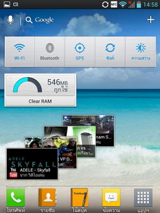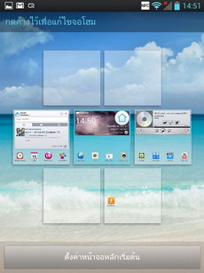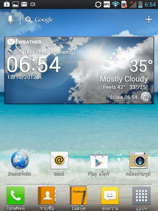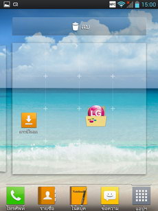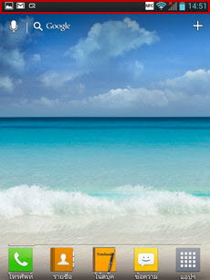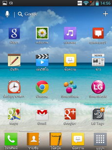 - ส่วนกลาง เป็นพื้นที่วางไอคอนและ widget สามารถเรียงไอคอนได้สูงสุด 4x4 แถว