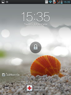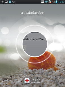 หน้าล็อคสกรีน ใช้รูปแบบการปลดล็อคด้วยวิธีเลื่อนนิ้วบนหน้าจอ บริเวณที่ว่างไปทางด้านใดด้านหนึ่ง