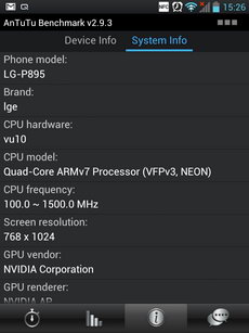 LG Optimus Vu รันบนระบบปฏิบัติการแอนดรอยด์ 4.0.4 Ice Cream Sandwich หน้าจอกว้าง 5 นิ้ว ความละเอียด 1024x768 พิกเซล เทคโนโลยี True HD IPS ขับเคลื่อนด้วย CPU quad-core Nvidia Tegra 3 ความเร็ว 1.5 GHz, RAM 1GB DDR2, พื้นที่เก็บข้อมูลในเครื่อง 32 GB, รองรับการใช้งานปากกา Rubberdium, รองรับ 3G, Wi-Fi, Wi-Fi Direct, Wi-Fi Hotspot, การเชื่อมต่อ MHL, DLNA, NFC, Android Beam, Bluetooth 4.0 LE, GPS (A-GPS) แบตเตอรี่ SIO+ ความจุ 2080 mAh
