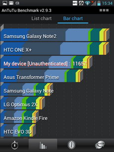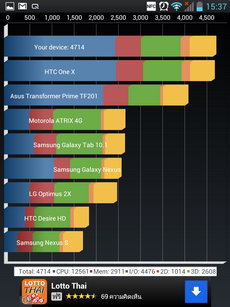 การทดสอบความเร็ว และการแสดงผลของเครื่อง ผลทดสอบความเร็ว Benchmark ด้วย AnTuTu Benchmark ได้ 11,657 คะแนน