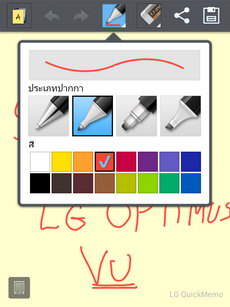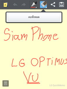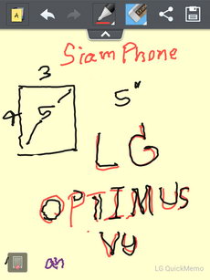 QuickMemo แอพพลิเคชั่นที่รองรับการจดบันทึกด้วยปากกา Rubberdium ผ่านหน้าจอ สามารถเรียกใช้งาน QuickMemo โดยกดปุ่ม QuickMemo ที่ด้านบนของเครื่อง (ใกล้กับช่องเสียบหูฟัง)