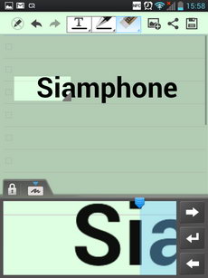 ด้านบนมีเครื่องมือสำหรับวาดรูป ประกอบด้วย ไอคอนโหมดอ่านอย่างเดียว, ไอคอนย้อนกลับ, ข้ามไปข้างหน้า, ไอคอนใช้งานโหมดตัวอักษร, ไอคอนใช้งานการวาดด้วยปากกา, ยางลบ, ใส่รูปภาพ, แชร์, บันทึก