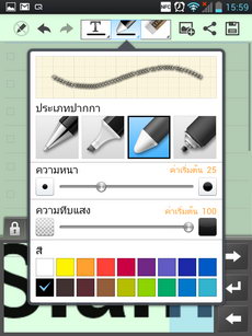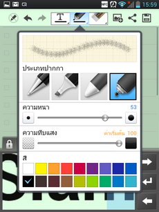 สามารถเลือกปากกาได้ 4 ชนิด โดยปรับความหนาได้ 1-60 เท่า ปรับความทึบแสงได้ 1-100 ระดับ และเลือกสีได้ 18 สี