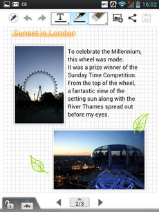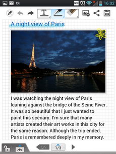 ภายในหน้าสมุดบันทึก ตรงกลางเป็นที่สำหรับใส่ข้อความตัวอักษร, รูปวาด, ไฟล์ภาพ, ไฟล์วิดีโอ และอื่นๆ ตามที่ผู้ใช้ต้องการ