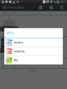 Polaris Office แอพพลิเคชั่นจัดการเอกสารบนมือถือ สามารถสร้าง/เปิดดู/แก้ไขไฟล์เอกสาร Word, PowerPoint,Excel โดยมีเทมเพลตให้เลือกบางส่วน มีเครื่องมือสำหรับใช้แก้ไขหรือจัดการงานเอกสาร