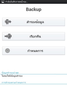 Backup แอพพลิเคชั่นสำรองข้อมูล สามารถเก็บบันทึกข้อมูลจากหน่วยความจำภายในเครื่องและเรียกคืนกลับมาได้ (ยกเว้นทำการรีเซตเครื่องกลับไปใช้ค่าที่ตั้งจากโรงงาน)
