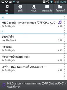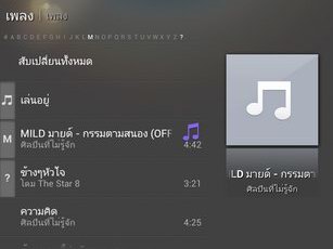 เครื่องเล่นเพลง แบ่งหมวดหมู่เพลงออกเป็น เพลงทั้งหมด, อัลบั้ม, ศิลปิน, รายการเล่น, โฟลเดอร์