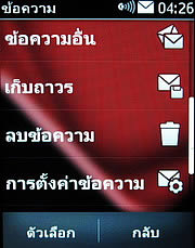 ข้อความ - ใช้งานข้อความ SMS, MMS สร้างข้อความ, รูปแบบสนทนา, รายการที่ส่ง, ฉบับร่าง, ข้อความอื่น, เก็บถาวร, ลบข้อความ, การตั้งค่าข้อความ, ข้อความเสียง, ข้อความข้อมูล