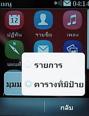 หน้าเมนูหลัก แสดงไอคอนเมนูต่างๆ พร้อมชื่อกำกับ สามารถกำหนดมุมมองเมนูหลักได้้ 2 รูปแบบ คือ รายการ และ ตาราง