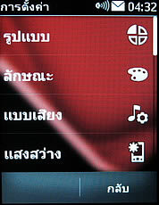 การตั้งค่า - รูปแบบ, ลัำกษณะ, แบบเสียง, แสงสว่าง, จอแสดงผล, วันที่และเวลา, ปุ่มลัดส่วนตัว, ซิงค์และสำรอง, การเชื่อมต่อ, โทรออก, อุปกรณ์, อุปกรณ์เสริม, การตั้งค่ากำนหนดค่า, ความปลอดภัย, บัญชี Nokia