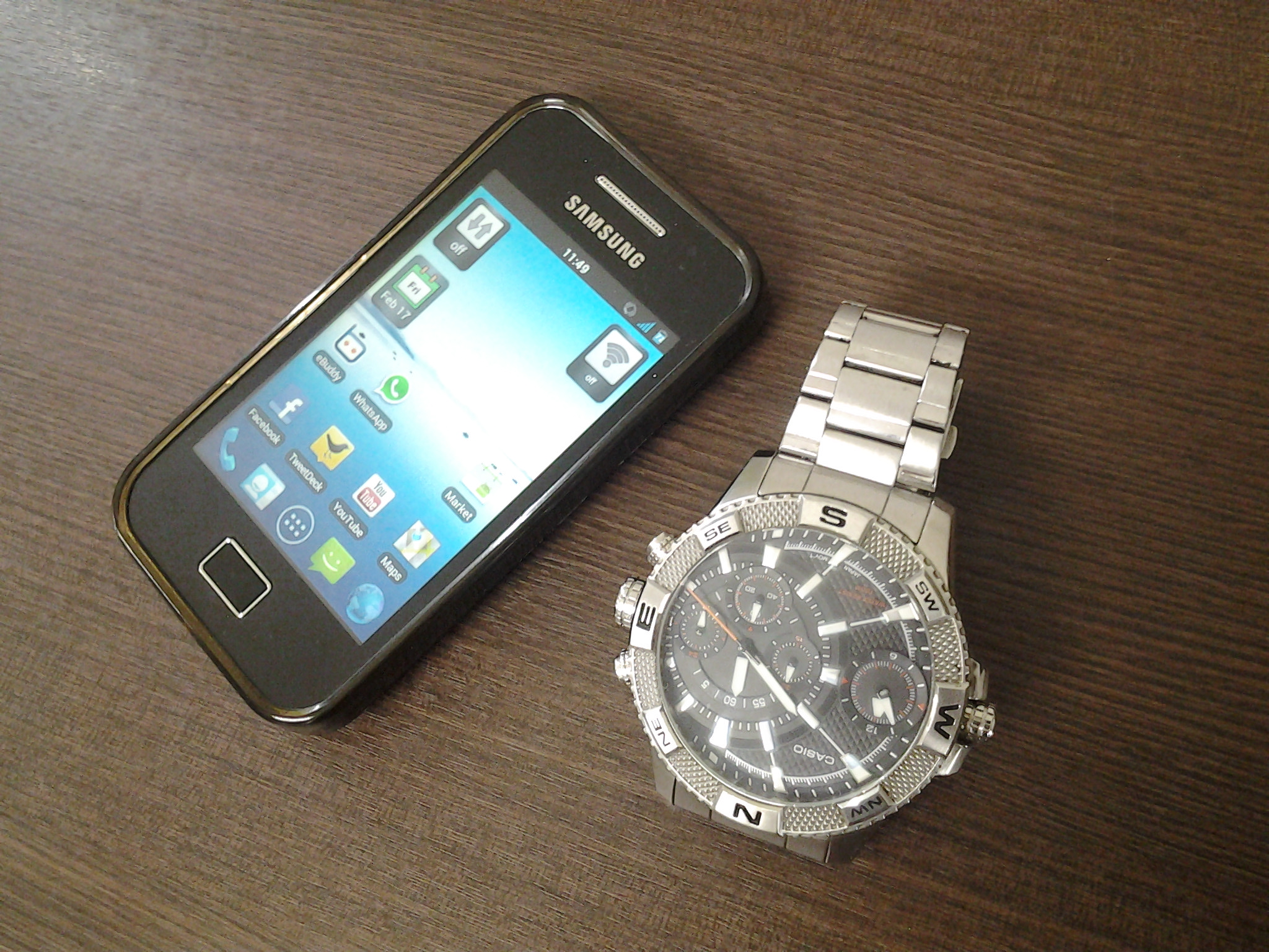 - ตรงกลาง มีไอคอนลูกศรสำหรับใช้งาน Mini Apps ไอคอนแอพพลิเคชั่นที่ใช้งานบ่อยๆ แสดงเป็นหน้าต่างแอพฯ ขนาดเล็กหรือขยายเแบบเต็มหน้าจอ โดยสามารถแก้ไขไอคอนที่แสดงไว้ได้ เช่น นาฬิกาปลุก, เครื่องคิดเลข, ปฏิทิน, อีเมล, ข้อความ, เครื่องเล่นเพลง, Pen Memo, โทรศัพท์, Task Manger, นาฬิกาโลก