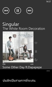 เมื่อเลือกเพลงที่ต้องการ ในหน้าเล่นเพลงจะแสดงปุ่มควบคุมการทำงาน (ปุ่มย้อนกลับ, ปุ่มหยุด-เล่นเพลง และปุ่มถัดไป), ชื่อศิลปิน, ชื่ออัลบั้ม, หน้าปก (ถ้ามี) และชื่อเพลง อีกทั้งยังสามารถบันทึกเพลงเป็นรายการที่จะเล่นภายหลังได้