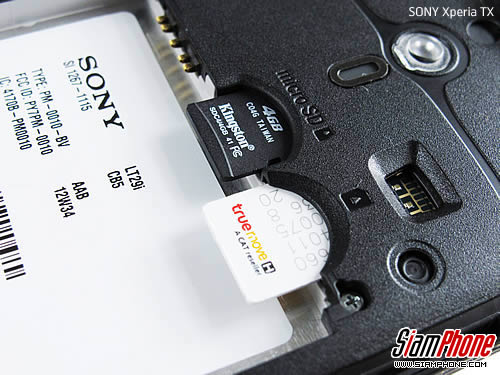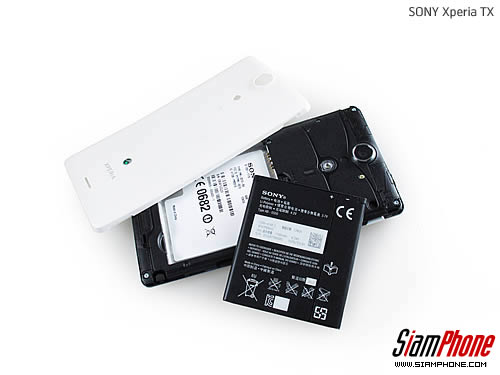 ถอดฝาหลัง SONY Xperia TX โดยการใช้นิ้วงัดบริเวณร่้องด้านข้างซ้ายมือตัวเครื่อง จากนั้นค่อยๆ งัดตามขอบรอบตัวเครื่องขึ้นมา ที่ฝาหลังได้ทำการติดตั้ง NFC เทคโนโลยีสื่อสารไร้สายระยะสั้น สำหรับแชร์ภาพ แชร์ข้อมูลกับเพื่อนๆ, มีช่องวางแบตเตอรี่ขนาด 1700 mAh ด้านบนมีช่องสำหรับเสียบ Micro Sim และช่องเสียบการ์ดความจำภายนอกแบบ microSD