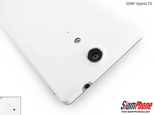 ด้านหลังของ SONY Xperia TX มาในโทนสีขาว มีพื้นผิวแบบเรียบ โดยที่ด้านบนมีเลนส์กล้องดิจิตอลความละเอียด 13 ล้านพิกเซล ถัดลงมามีไฟแฟลช LED, มีโลโก้สัญลักษณ์ NFC เทคโนโลยีสื่อสารไร้สายระยะสั้น พร้อมรูไมโครโฟนตัวที่ี่ 2 และข้างล่างสุดเป็นช่องลำโพงเสียง
