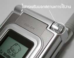 และ จะเป็นสีแดง เมื่ออยู่นอกเขตสัญญาณ และจะกระพริบทุกครั้ง เมื่อมีสายเรียกเข้า