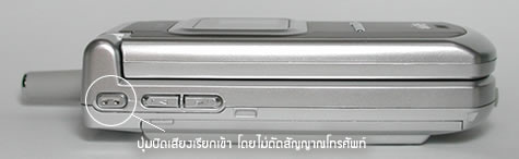 : จะมีปุ่มปรับเสียงดัง-เบาในขณะสนทนา และหากกดเมื่อเปิดฝาจะใช้สำหรับปรับระดับเสียงเรียกเข้า