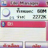 ส่วนอื่นๆ ก็มีการเปลี่ยนสีเพื่อไม่ให้จำเจทั้งหมด 5 สี และที่น่าสนใจอีกอย่างคงเป็น File manager สำหรับจัดการไฟล์ต่าง ๆ ในตัวเครื่อง อย่างแรกเมื่อเข้าไปก็จะแสดงหน่วยความจำทั้งหมดที่สามารถใช้งานได้จริง ๆ คือ 60 MB พร้อมทั้งแสดงหน่วยความจำที่ใช้ได้ ในโฟลเดอร์แรกก็คือ audio จะเก็บไฟล์ที่ได้จากการอัดเสียง โฟลเดอร์ user แบ่งเป็นโฟลเดอร์ย่อย ๆ อีก 2 โฟลเดอร์ นั่นคือ sound สำหรับเก็บเสียงที่ผู้ใช้ได้แต่งขึ้นเองจากเมนูการแต่งเสียงเรียกเข้าภายในเครื่อง และก็เก็บเสียงเรียกเข้าจากที่ดาวโหลดผ่านทาง gprs ส่วน image จะเป็นโฟลเดอร์เก็บไฟล์ภาพต่าง ๆ ที่ได้มาจากการดาวโหลดผ่านทาง gprs หรือจะเป็นการดาวโหลดผ่านทาง usb data cable