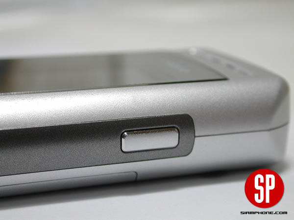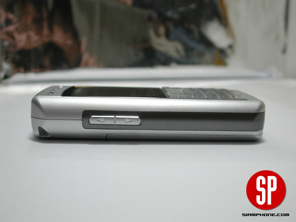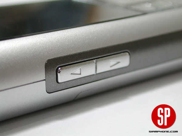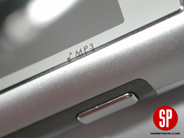 เริ่มจากทางฝั่งซ้ายของเครื่อง จะมีปุ่มเพิ่ม-ลดระดับเสียงที่สามารถใช้เป็นตัวเลื่อนเลือกเมนูภายใน และ เลือกเพลงขณะที่อยูู่่ในโหมดเครื่องเล่น MP3 ถัดมาทางด้านขวา ปุ่มโครเมี่ยมที่เห็นจะเป็นปุ่มลัดเข้าู่สู่โหมด mp3player ทั้งนี้จากการที่ใช้โทนสีเทาควันบุหรี่ตัดกับสีเงินอลูมิเนียม ทำให้ตัวเครื่องดูบางลง ทั้งยังเพิ่มความสวยหรูไปอีกแบบ