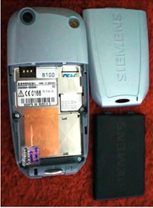 ถัดลงมาจะเป็นฝาครอบแบตเตอร์รี่ ซึ่งได้สลักคำว่า SIEMENS