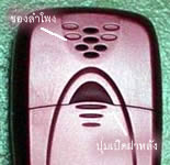 รู ซึ่งใช้สำหรับเป็นลำโพงของเสียงเรียกเข้า polyphonic ถัดมาอีกนิดจะเป็นฝาปิดแบตเตอรี่